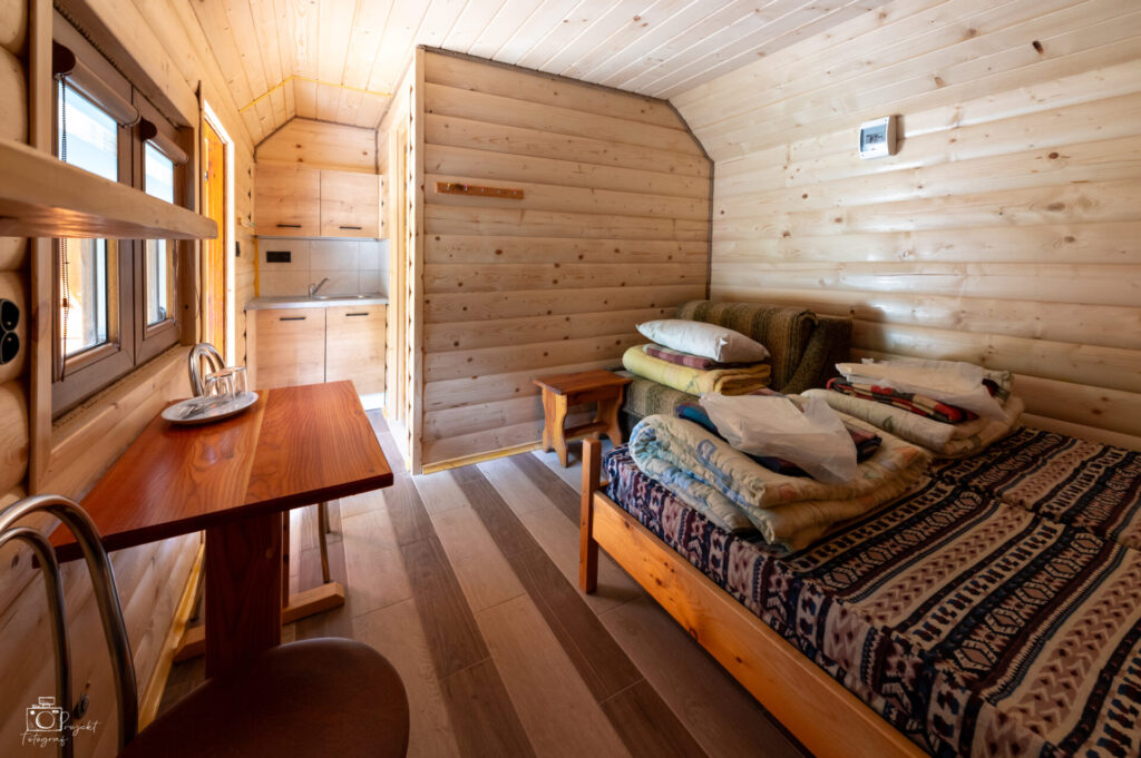 Są to domki drewniane, wykonane z boazerii, przeznaczone dla 2 lub więcej osób. W domku są 2 łóżka i rozkładany fotel oraz łazienka z pełnym węzłem sanitarnym, każdy domek wyposażony jest w TV, czajnik oraz chłodziarkę. Domki nie posiadają pełnego aneksu kuchennego.