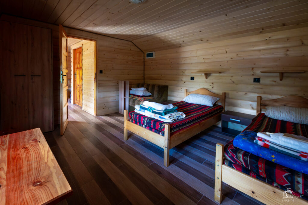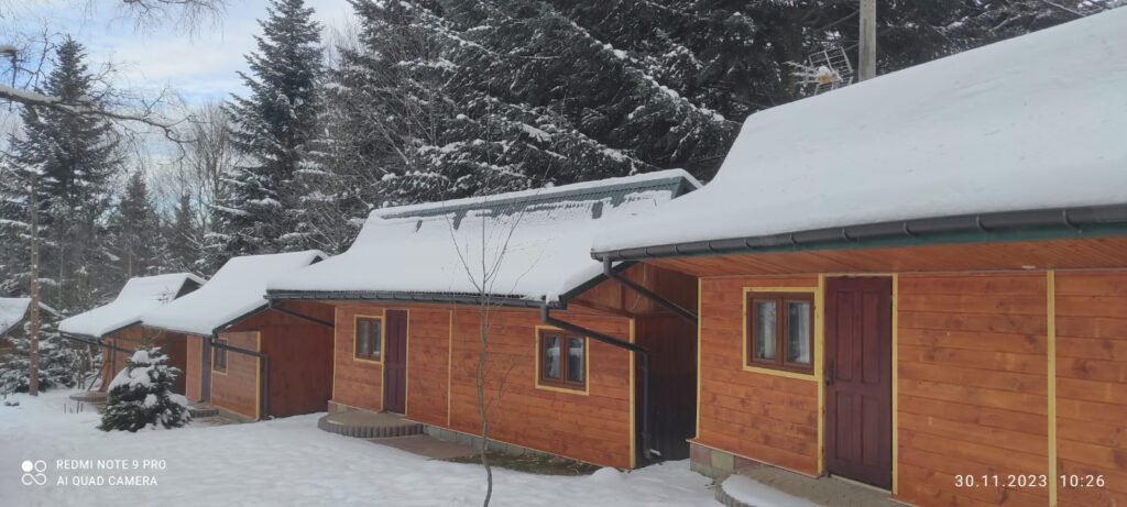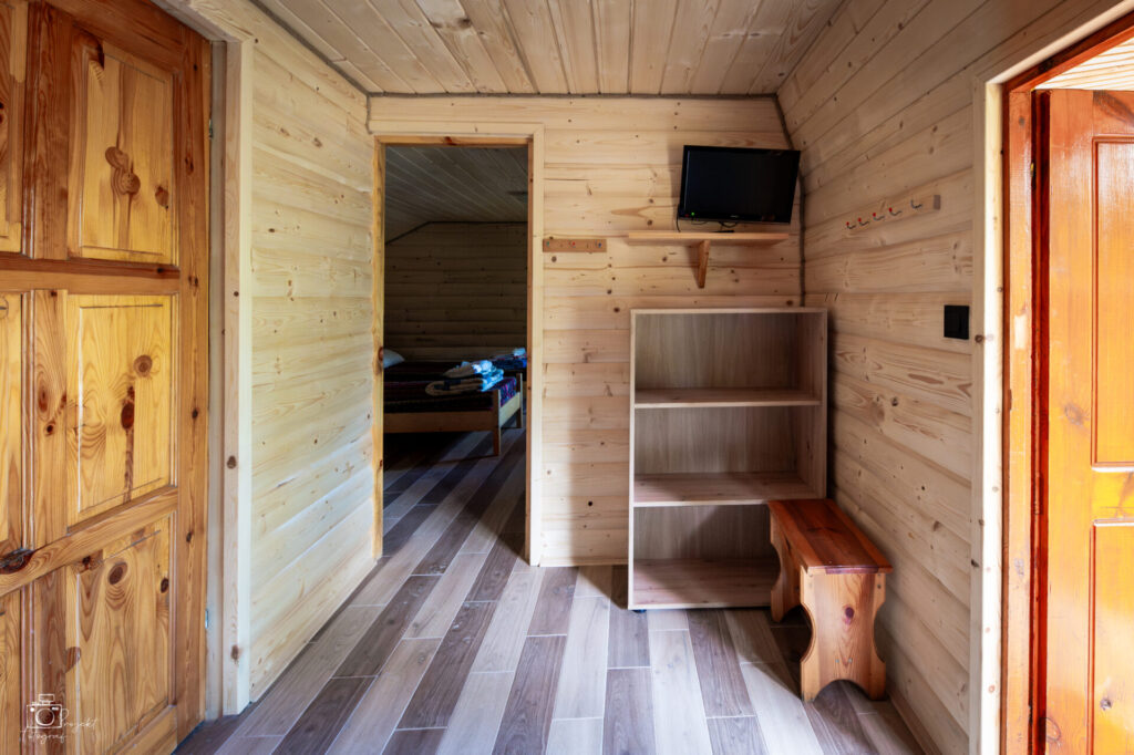 Są to domki drewniane, wykonane z boazerii, przeznaczone dla 4 lub więcej osób. Do dyspozycji są 2 pokoje (jedno wejście) oraz łazienka z pełnym węzłem sanitarnym. W jednym pokoju znajduje się TV, czajnik, rozkładana wersalka, mini aneks kuchenny i chłodziarka, a w drugim 2 łóżka i rozkładany tapczan. Istnieje możliwość doniesienia do domku łóżeczka dla dziecka lub dostawki (materac) dla osoby dorosłej (wystarczy zgłosić w dniu przyjazdu). Domki nie posiadają pełnego aneksu kuchennego.