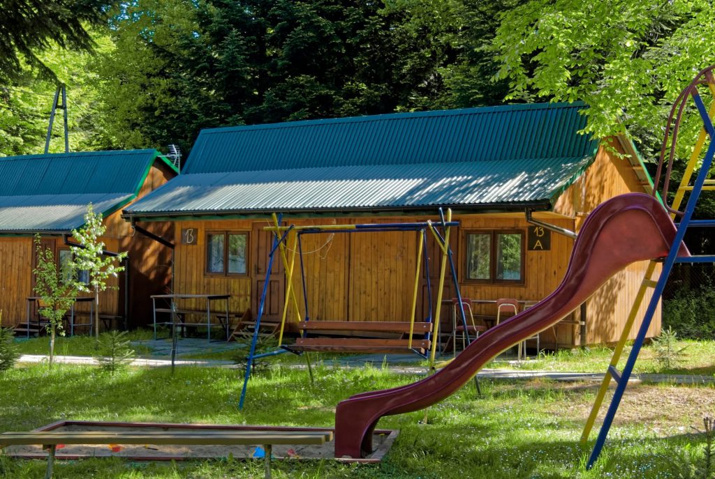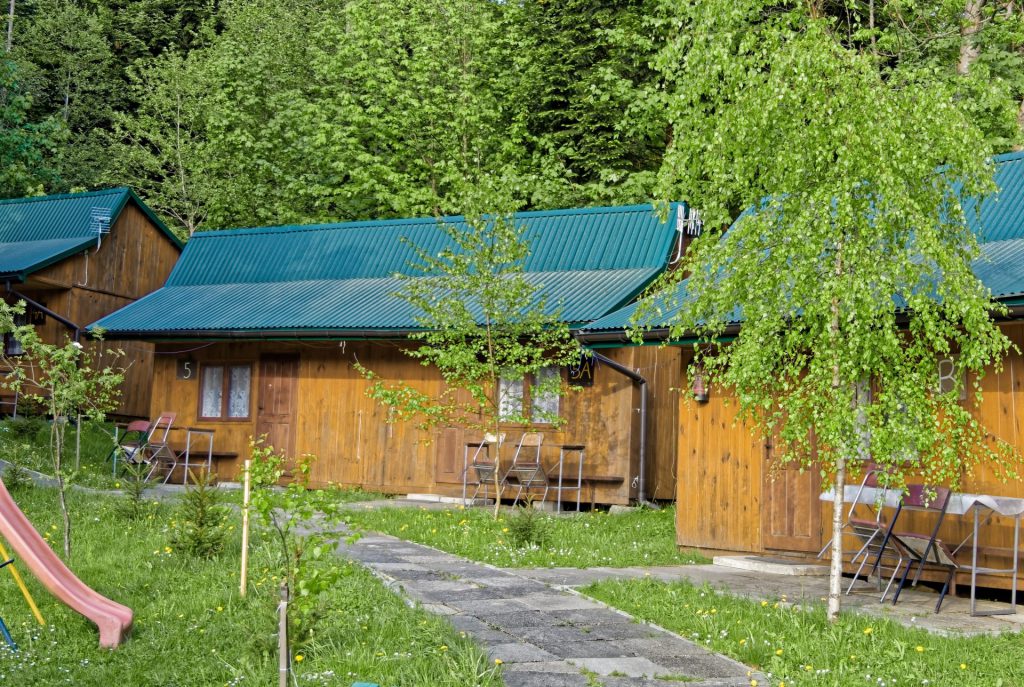 Są to domki drewniane, wykonane z boazerii, przeznaczone dla 2 osób (2 pokoje, bez przejścia między nimi, każdy z osobnym wejściem i łazienką z pełnym węzłem sanitarnym np. dla dwóch oddzielnych par), w pokoju są 2 łóżka i rozkładany fotel, każdy pokój wyposażony jest w TV oraz czajnik. Istnieje możliwość doniesienia do domku łóżeczka dla dziecka.